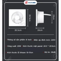 Đánh giá Quạt thông gió 6 inch 20W siêu êm 38dB, tiết kiệm điện, lỗ 15cm – Phù hợp cho nhà vệ sinh và phòng nhỏ thông gió khử ẩm
